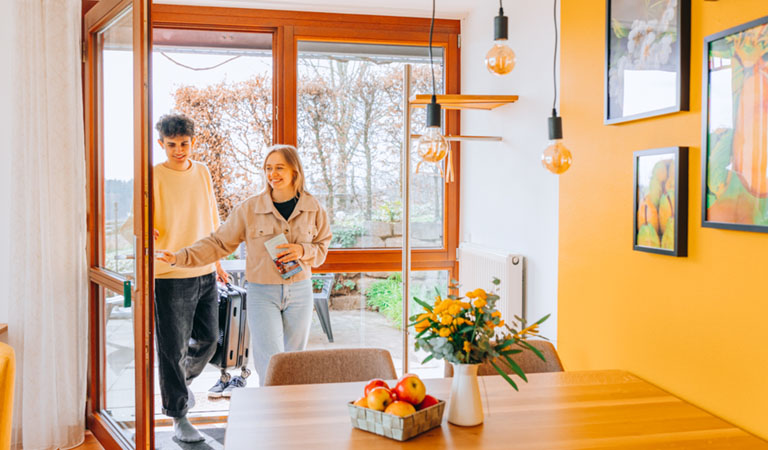 Weil die Einzellage viel Ruhe und Platz bietet – Kinder können draußen spielen, während Eltern eine entspannte Zeit und den weiten Blick über die Obstgärten genießen.