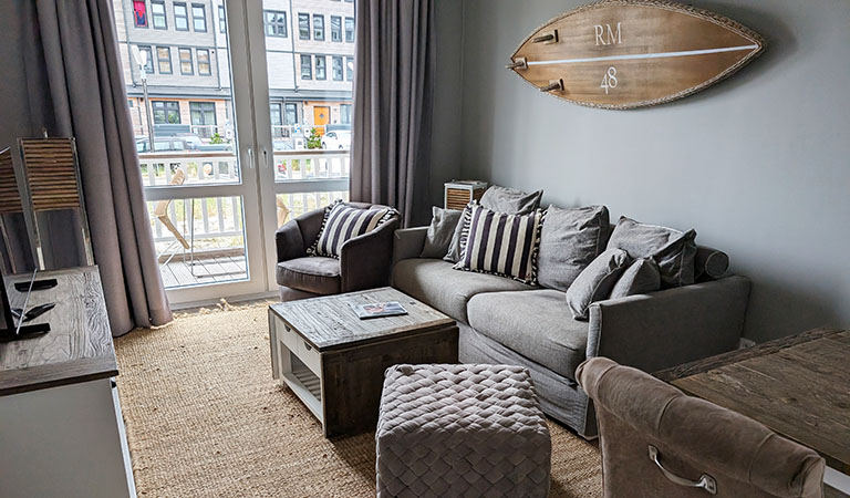 Wer mit seinen Kids in den Beach Apartments eincheckt, muss sich um Langeweile keine Gedanken machen. Die großzügigen, top ausgestatteten Ferienwohnungen bieten viel Platz für eine unbeschwerte Familienzeit, das hauseigene Ocean Spa mit Sauna, Dampfbad, Schneekammer, Whirlpool im Außenbereich und stylischen Ruheräumen ist der perfekte Rückzugsort zum Relaxen und im Restaurant La Tigre trifft Dolce Vita auf Nordseeflair. Ein weiteres Highlight: Kleine und große Gäste der Beach Apartments dürfen die Annehmlichkeiten des benachbarten Schwesterhotels Bretterbude nutzen, am dortigen Außenpool relaxen, im Kino Popcorn naschen oder eine Runde auf der Skaterbahn drehen. Und dann gibt es natürlich noch die Attraktionen von Büsum, dem kleinen charmanten Hafenort, der schon lange kein Geheimtipp mehr ist. Ob die Familienlagune Perlebucht, Kutterfahrt und Wattwanderung oder ein Besuch im Mitmachmuseum Phänomania, im Schwimmbad Meerzeit oder im kleinen Aquarium am Hafen – Büsum ist eine Wundertüte für Familien.