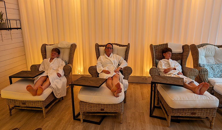 Und weil Urlaub eben auch Verwöhnzeit ist, steht euch zum anderen ein 1A-Service zur Verfügung – vom familienfreundlichen Wellnessbereich mit Saunalandschaft, Schneekammer und Whirlpool bis hin zu einer Rezeption, an der ihr euch Regenschirm, Spielesammlung und Co ausleihen könnt.
