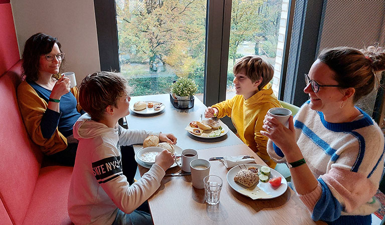 Klar empfehlen wir euch das Meininger Berlin Tiergarten nicht nur wegen seines hippen, lokal geprägten Designs oder wegen seiner zentralen Lage direkt an der U-Bahn-Haltestelle Turmstraße. Fast noch wichtiger sind die komfortablen Familienzimmer mit flexibler Bettenanzahl sowie das erstklassige, reichhaltige Frühstücksbuffet. Und während bei euren Kindern und Teenagern vor allem die Game-Zone mit Kicker und Co Begeisterung weckt, freut ihr euch vermutlich über die stylische Lounge mit Bar, Bibliothek und Snackautomat.