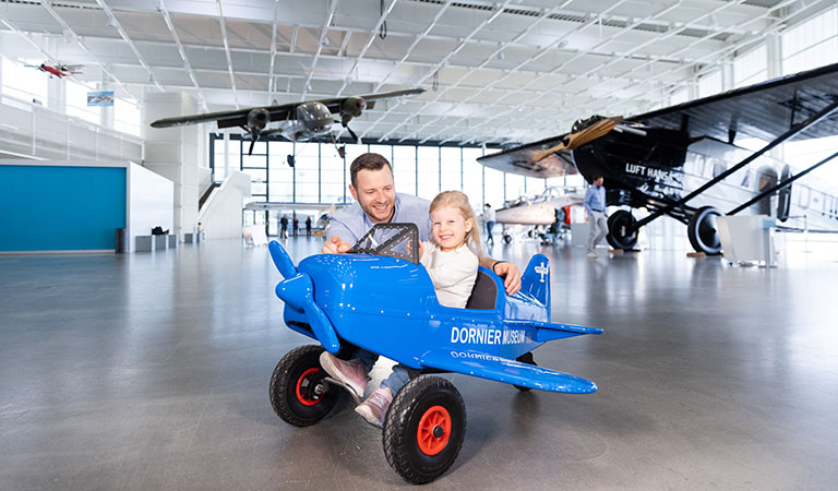 Was ihr bei einem Familienurlaub in Friedrichshafen auf keinen Fall verpassen solltet: einen Bummel über die lange Promenade und durch die hübsche Innenstadt mit ihren Spielplätzen, kleinen Lädchen und Restaurants. Digitale Entdeckertouren machen Friedrichshafen zum Abenteuerspielplatz: Mit den Augmented-Reality-Touren der zeigmal-App sowie der Yona-App erkundet ihr Friedrichshafen interaktiv. Oder ihr ladet euch die Actionbound-App aufs Smartphone und meistert auf bei spannenden Familienrouten durch die Stadt knifflige Rätsel und Aufgaben. Wenn ihr im Anschluss eine Abkühlung braucht, erfrischt ihr euch in einem der vier Bäder in und um Friedrichshafen. Und wenn das Wetter mal nicht zum Badespaß einlädt? Dann besucht ihr das Schulmuseum, das gemütliche Medienhaus am See oder ihr taucht eben doch in die Welt der Luftfahrt ein: im Zeppelin Museum oder im Dorniermuseum, ein spannendes Technikmuseum zur Luft- und Raumfahrt.