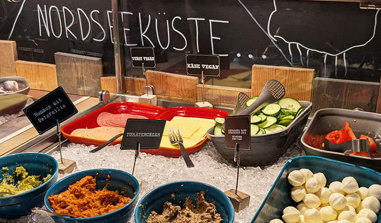 Übrigens auch bei der Gastro: Im hoteleigenen Restaurant Strandschuppen gibt es morgens ein phänomenales Frühstücksbuffet und abends leckere Gerichte aus regionalen Zutaten – auch in der Kinderkarte.