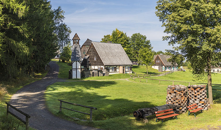 Außerdem sehenswert in Olbernhau: der Denkmalkomplex Saigerhütte. In vier Häusern wird die Geschichte des Silberbergbaus dargestellt – ein einzigartiges Areal, das zum UNESCO Welterbe zählt. Kindern wird das Thema in speziellen Erlebnisführungen nahegebracht.
