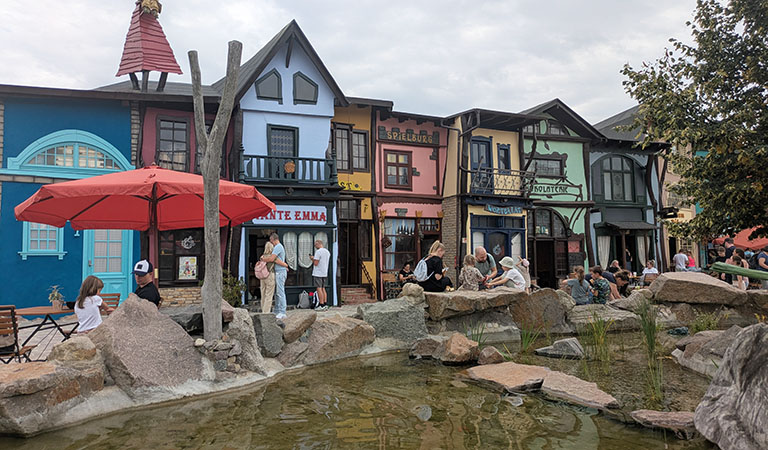 Ganz in der Nähe von Leipzig gelegen hat der Spielplatzbauer Günther Ziegler in Zusammenarbeit mit vielen kreativen Kräften in rund 13 Jahren Bauzeit eine fantasievolle Erlebniswelt erschaffen, in der kleine und große Gäste über 20 ineinander verwobene und zauberhaft gewachsene Themenbereiche entdecken können: geheimnisvolle Pfade, Seilbrücken, Tunnelsysteme, Baumhäuser, idyllische Rosengärten und Seeterrassen.