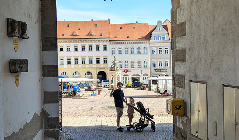 Doch so schön unsere Unterkunft ist – die Umgebung ist es auch. Zum Beispiel: Torgau, unser erstes Ausflugsziel. Die Sonne brennt vom strahlend blauen Himmel, als wir in dem kleinen Städtchen ankommen, das als „Perle der Renaissance an der Elbe“ gilt.