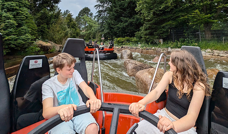 Einen deutlich größeren Adrenalinrausch gibt es in „Transsilvanien“, in der „Bucht der Piraten“ und in der Themenwelt „Exploria“. Hier lassen Wasserbahnen, Dämonengruft, Schiffsschaukel und Co die Herzen schneller schlagen. Wie gut, dass sich der Puls in deutlich beschaulicheren Attraktionen wie der Floßfahrt oder der Panoramabahn dann wieder beruhigen kann. Oder bei einer Pause in einem der vielen Imbisse, Restaurants und Cafés.