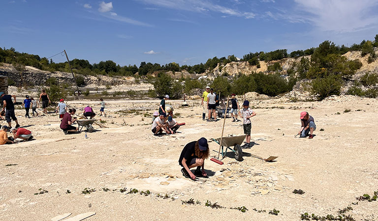 Im nahegelegenen Steinbruch schlagen die Kinder konzentriert Schicht für Schicht auf. Aurelia freut sich über Pflanzenabdrücke, Theodor strahlt, als er einen kleinen Ammoniten entdeckt. Spätestens jetzt sind alle im Fossilienfieber. Einen Archaeopteryx finden wir zwar nicht, doch der Stolz, etwas Eigenes aus dem Stein gelöst zu haben, ist unbezahlbar.