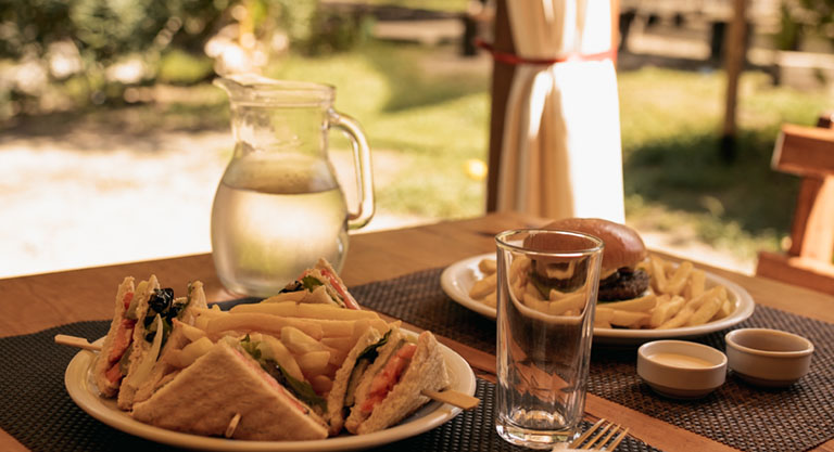 Eines versprechen wir euch: Nach einem Urlaub im Familienhotel ReNatour Honigtal werdet ihr große Fans der griechischen und korfiotischen Küche sein. Das Hotel hat eine eigene Taverne, in der ihr im Rahmen der Halbpension rundum verwöhnt werdet: morgens mit einem leckeren Frühstücksbuffet und abends mit typisch griechischen Gerichten, von denen viele auch vegetarisch sind (eine vegetarische Verpflegung, Allergien oder Lebensmittelunverträglichkeiten solltet ihr bei der Buchung mit angeben). Die frischen Produkte stammen aus der Region oder sogar aus dem eigenen Garten. Tafelwasser ist inklusive, weitere Getränke und kleine Snacks gibt es zu fairen Preisen an der Bar.