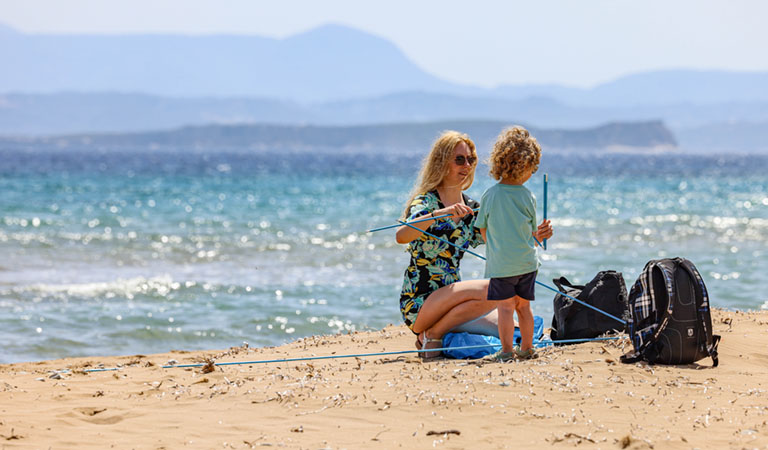 Betrieben wird das Familienhotel von ReNatour, einem deutschen Spezialveranstalter für nachhaltiges Reisen. Und dieses Konzept wird hier gelebt, zeigt sich in dem weitläufigen Olivenbaum-Garten, den Gemüsebeeten für die hoteleigene Taverne, den Ziegen, Hühnern und – wie sollte es im Honigtal anders sein – der eigenen Bienenhaltung von Küchenchef und Imker Kostas. Aber auch beim naturpädagogischen Kinder- und Jugendprogramm und bei den Familienangeboten wird schnell klar, dass nachhaltiger Familienurlaub im Einklang mit Mensch und Natur hier ziemlich gut funktioniert – und himmlisch erholsam ist.