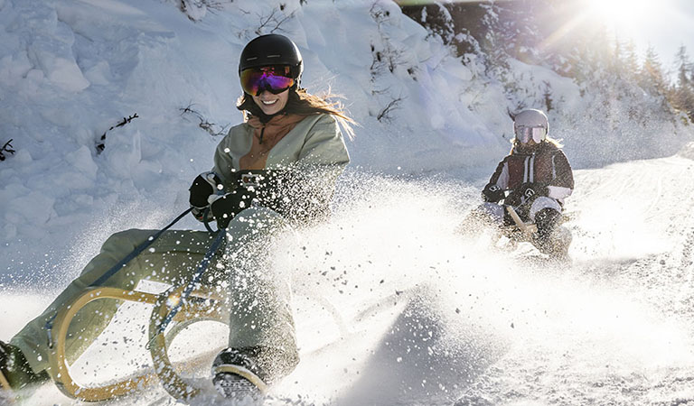 Wir erwähnten es bereits: Es lohnt sich, die zwei Bretter auch mal abzuschnallen – und zum Beispiel gegen zwei Kufen zu tauschen. Das ist in Nauders am Reschenpass sogar eine richtig gute Idee, denn hier gibt es eine der längsten Naturrodelbahnen Tirols. Auf stolzen acht Kilometern Länge geht es von der Bergstation der Bergkastelbahn auf 2.200 Metern Höhe bis hinunter ins Tal.