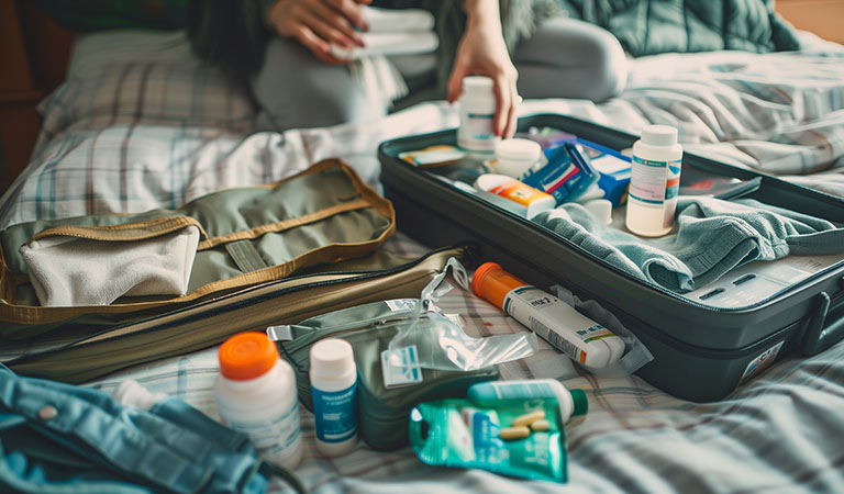 Wer wegen chronischer Erkrankungen regelmäßig Medikamente einnehmen muss, sollte diese in ausreichender Menge mitnehmen. Denn im Urlaubsland gibt es das entsprechende Mittel möglicherweise nicht oder die Beschaffung erweist sich als komplizierter. Unser Tipp: Nehmt lieber eine Reserve mit. Wer fliegt, sollte die Medikamente im Handgepäck transportieren, falls der Koffer verloren geht. Bei flüssigen Mitteln unbedingt daran denken, dass sie zu den begrenzten Flüssigkeiten zählen und im 1-Liter-Beutel transportiert werden müssen. Bei Reisen ins Ausland kann ein mehrsprachiger Medikamentenplan oder ein Attest vom Arzt hilfreich sein – besonders bei verschreibungspflichtigen Präparaten oder wenn das Medikament unter das Betäubungsmittelgesetz fällt.