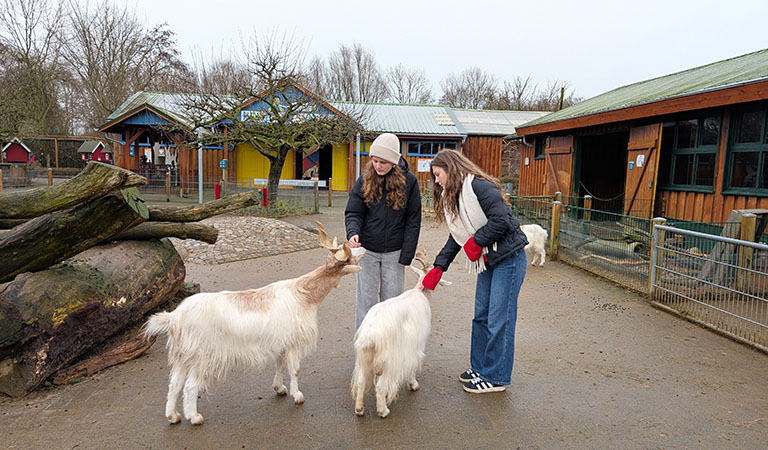 Am Westküstenpark liegt das nicht, denn der ist richtig schön. Über 800 Haus- und Wildtiere sind auf dem gepflegten Areal zuhause: Typische Hoftiere wie Schafe, Ponys, Alpakas und Ziegen ebenso wie seltene Barockesel, Kraniche, Echsen, Schlangen und Greifvögel. Wir schlendern vorbei an den großen Freigehegen, den Volieren, Weiden und Käfigen – immer begleitet vom fröhlichen Geklapper der Störche. „Wisst ihr, was an einem Besuch im Winter hier noch besser ist als die wenigen Menschen? Die Tiere mit ihrem kuscheligen Winterfell“, freut sich Jette, gräbt ihre Finger ins zottelige Fell des kleinen Eselfohlen.
